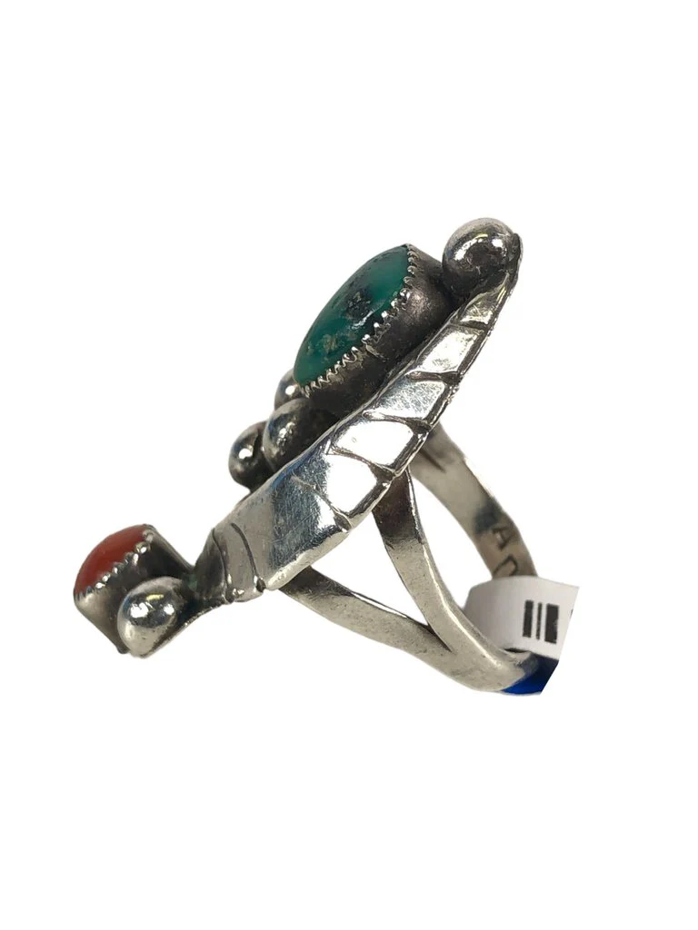 SS Two Stone Ring w/ Leaf—